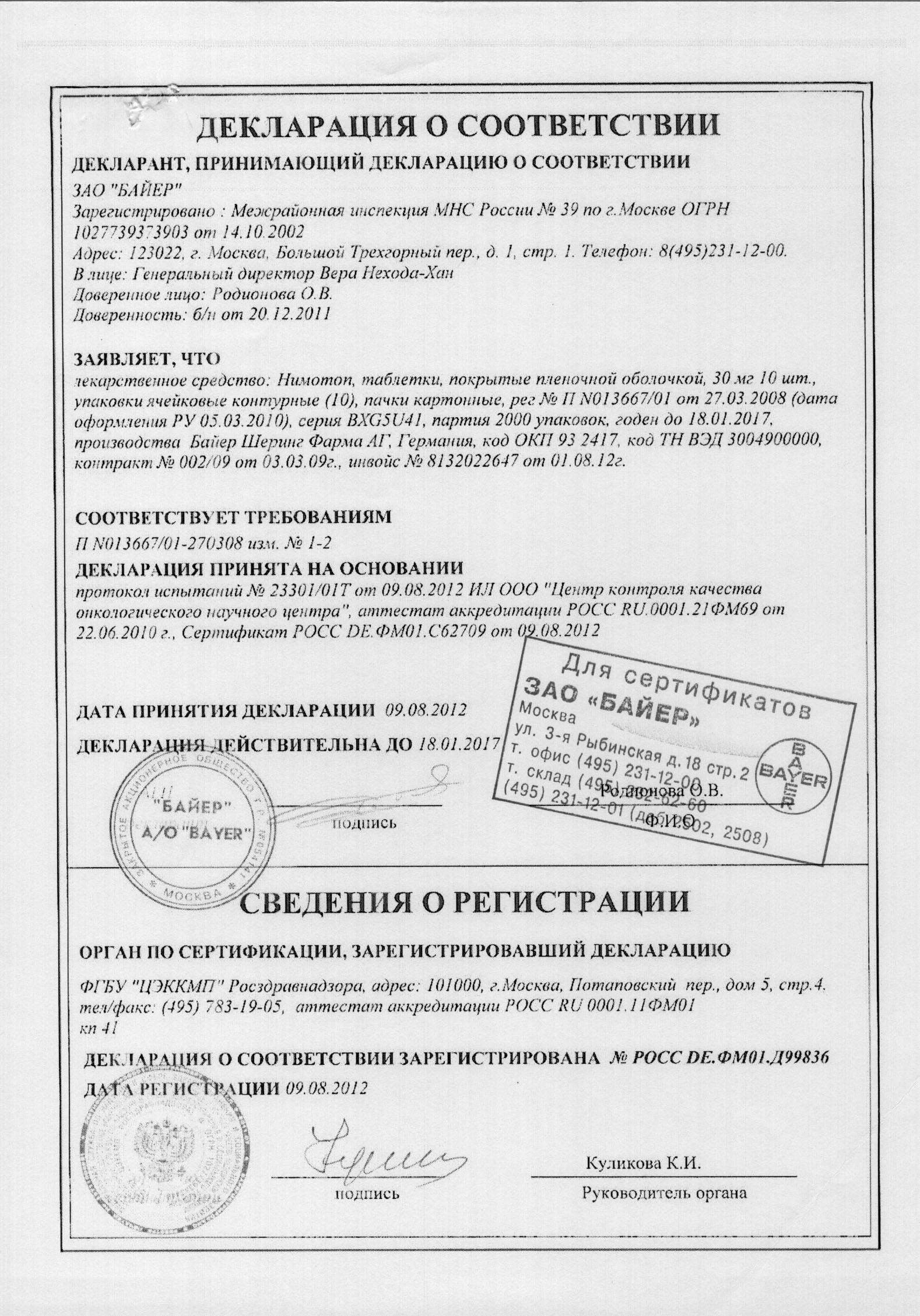 Особые указания. Таблетки назначаются через 5-14 дней парентерального введения нимотопа для инфузий. Назначение нимодипина в таблетках пациентам пожилого возраста с большим количеством сопутствующих заболеваний, тяжелой почечной недостаточностью и тяжелыми сердечно-сосудистыми заболеваниями должно быть особенно тщательно обосновано.