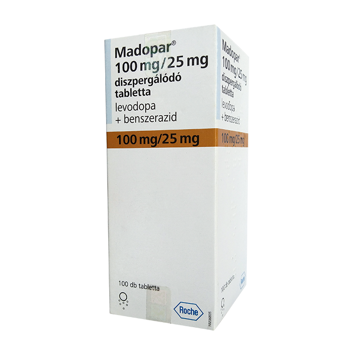 Мадопар® представляет собой комбинацию этих веществ в соотношении 4:1, которая является оптимальной и обладает такой же эффективностью, как леводопа в высоких дозах.