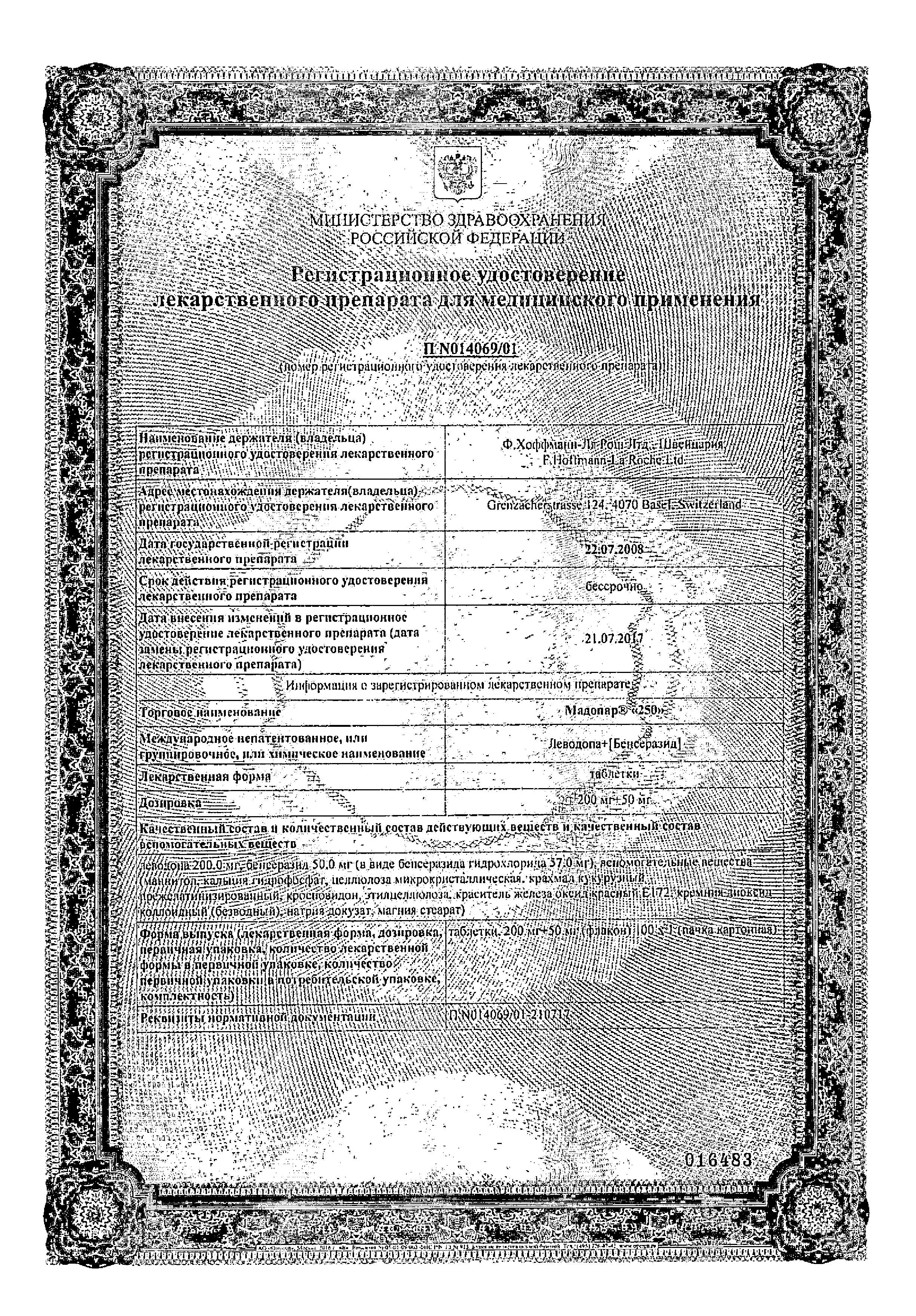 Применение. Пациентам, ранее не получавшим лечения, врач начнет терапию с суточной дозы от одной до двух таблеток Мадопара. Дозу можно увеличивать на половину таблетки до одной таблетки каждый третий-седьмой день. Обычно не следует превышать суточную дозу восьми таблеток.