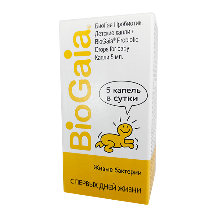 Показания. Капли БиоГая (BioGaia) могут использоваться у детей с первых дней жизни. Пробиотик назначают детям при жалобах на колики, во время лечения инфекционных заболеваний, при назначении антибактериальной терапии. Прием препарата БиоГая также оправдан при лечении противовирусными средствами, цитостатиками, гормональными препаратами. К показаниям для использования пробиотика также относятся сниженный иммунитет, аллергии, смена места жительства, режима питания и т.д.