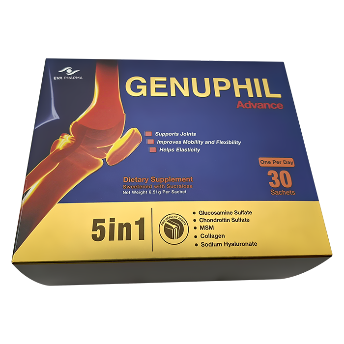 Genuphil Advance выпускается в форме порошка в саше для приема внутрь. В одной упаковке — 30 саше.