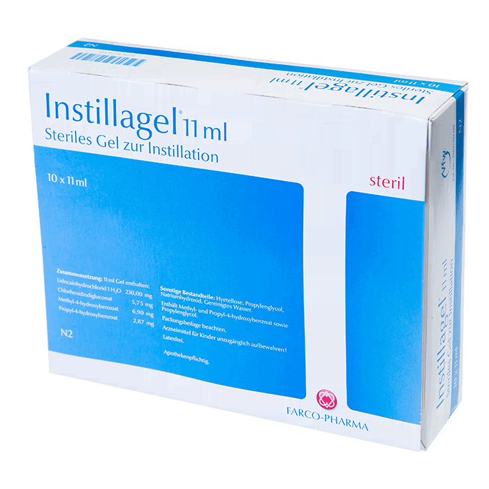 Препарат Инстиллагель используют в качестве местного обезболивающего и обеззараживающего средства в урологической, гинекологической и проктологической практике. В состав геля входят хлоргексидин и лидокаин. Препарат реализуется в виде аппликатора, содержащего готовое для применения средство.