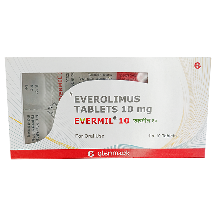 Evermil — противоопухолевый препарат в форме таблеток для приема внутрь. 10 таблеток помещены в картонную пачку.