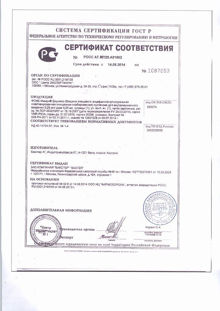 Показания. ФСМЕ Иммун Джуниор используется для предотвращения вируса клещевого энцефалита (КЭ). Подходит для детей от 1 года до 15 лет.