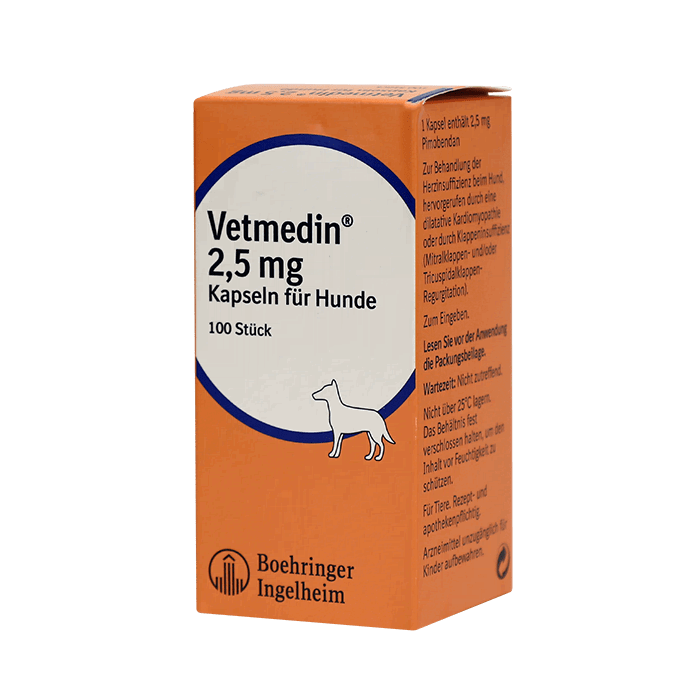 Ветмедин в капсулах 2,5 мг применяют перорально для лечения сердечно-сосудистых заболеваний у собак. Препарат дают животному за 1 ч до кормления.