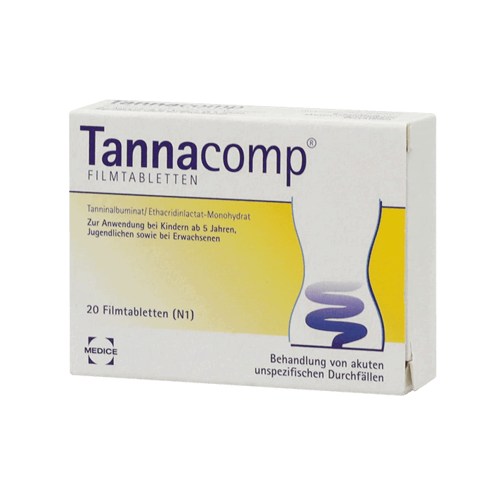 Tannacomp состоит из двух активных ингредиентов, которые дополняют друг друга и поддерживают их эффективность: танин и этакридин. Эффективное взаимодействие обоих веществ уплотняет и защищает чувствительную слизистую оболочку кишечника, эффективно снижает повышенную потерю жидкости и электролитов и быстро останавливает диарею.